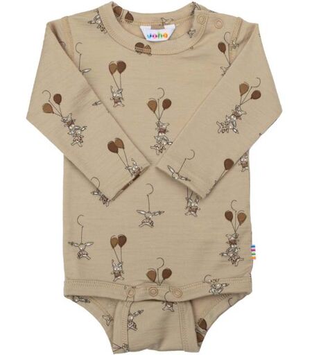 Joha Balloon Bunny body i ullMyk og lett body med lange ermer, laget av ekstra fin merinoull som føles behagelig mot huden. Trykknapper på den ene skulderen og mellom bena gjør den enkel å ta av og på. Søtt print og Oeko-Tex® 100-sertifisert.Materiale: 100 % merinoull ...