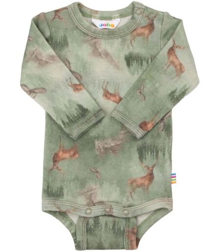 Joha Wood body i ullLangermet body med trykknapper på den ene skulder og mellom bena for enkel påkledning. Laget i supermyk og lett ullkvalitet med god stretch, som er behagelig å ha på. Vakkert digitalprint med skoglandskap og dyr. Oeko-Tex® 100-sertifisert.Materiale: 100 % merinoull ...