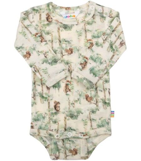 Joha Squirrel body i ullLangermet body med trykknapper på den ene skulderen og mellom bena for enkel påkledning. Ribbestrikket, myk og lett ullkvalitet med god stretch som er behagelig å bruke innerst. Søtt print. Oeko-Tex® 100-sertifisert.Materiale: 100 % merinoull ...