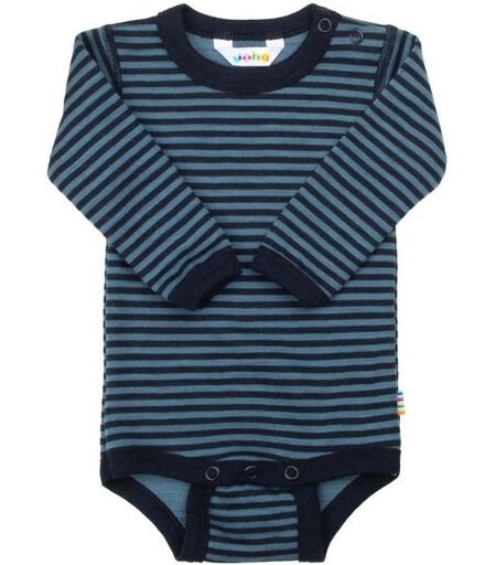 Joha Mini Stripe body i ullLangermet body i en pen, glatt og elastisk ullkvalitet som er myk og behagelig å ha på. Stoff med fine, smale striper og kontrastfargede kanter. Trykknapper på den ene skulderen og mellom bena for enkel påkledning. Oeko-Tex® 100-sertifisert.Materiale: 95 % merinoull, 5 % ...