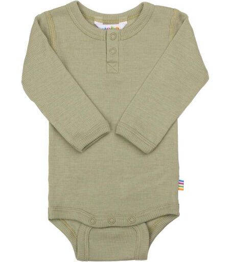 Joha Nature Park body i ull/silkeMyk body med stolpelukking og trykknapper mellom bena. Laget i en ekstra fin ullkvalitet med silke, som gir en utrolig myk følelse og et lett skinnende uttrykk. Oeko-Tex® 100-sertifisert.Materiale: 85 % merinoull, 15 % silke ...
