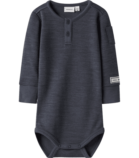 Name It Nbmwyla body i ull/viskoseUtrolig deilig og myk body til de minste i en ull/viskose-mix. Bodyen har knapper på brystet og en lomme på den ene armen.Materiale: 46% Ull (merinoull), 44% Viskose, 10% Polyamid ...