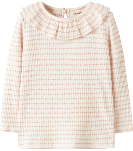 Lil' Atelier Nmfosophia genser til småbarnUtrolig søt genser til småbarn med fin struktur. Genseren har slim-fit passform og en bred krage.Materiale: 100% økologisk bomull ...