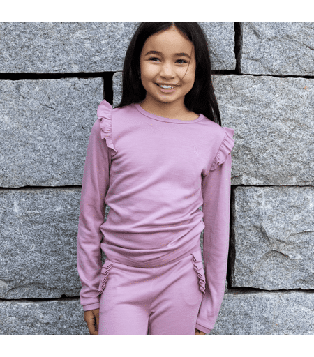 Vilje & Ve Dis genser i ull/bambusDis er en enkel ullgenser med søte volanger ved skulder. Genseren har rund hals og kommer i en klassisk marineblå, i tillegg til denne duse rosafargen.Materiale: 50% merinoull, 45% bambus av viscose, 5% Nylon ...