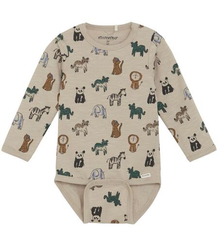 Minymo body m/printLangermet body fra Minymo med kjempefint dyreprint. Laget i en myk bomullsblanding som føles behagelig mot huden. Bodyen lukkes med trykknapper mellom bena og har Minymo-logo ved benet.Materiale: 95 % bomull / 5 % elastan ...