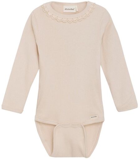 Minymo Rib bodySøt ribbestrikket body med lange ermer. Laget i et mykt og behagelig materiale og har praktiske trykknapper mellom bena. Produktet inneholder TENCEL™-fibre.Materiale: 50% modal, 46% bomull, 4% elastan ...