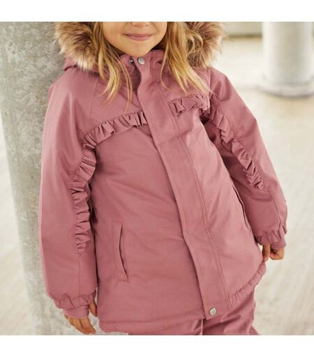 Minymo vinterjakke til barnVarm og lang vinterjakke fra Minymo. Jakken er laget i 100% polyester med mykt fleecefôr på innsiden. Den har flere praktiske detaljer, som avtakbar hette med avtakbar pelskant og strikk for god passform. Refleksdetaljer sørger for at barnet alltid er synlig ute i lek. ...