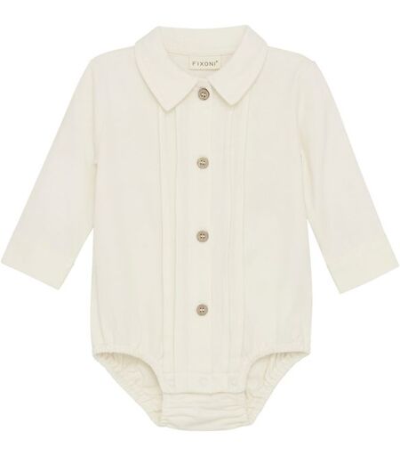 Fixoni skjortebodyEnsfarget body fra FIXONI. Bodyen har krage og fine detaljer langs stolpen. Den åpnes med knapper foran og trykknapper mellom bena.Materiale: 100 % bomull ...
