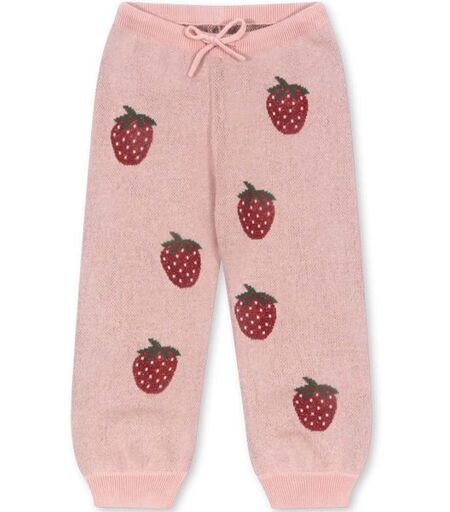 Konges Sløjd Lapis lurex bukse til barnNydelig, strikket bukse til barn i myk økologisk bomull. Buksen har jordbærprint med shimmer og med strikk i midjen med snørejustering.Materiale: 94% økologisk bomull, 4% metallfiber, 2% polyester ...