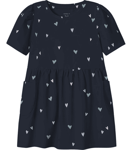 Name It Nmffenja kjole til småbarnSøt kortermet kjole til småbarn i myk bomull. Kjolen har hjerteprint over hele og har snitt i midjen.Materiale: 95% Bomull, 5% Elastan ...