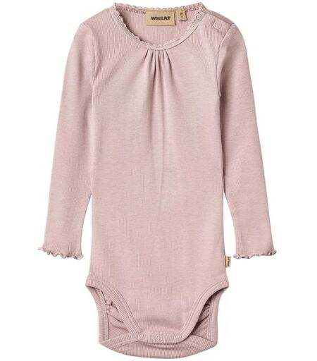 Wheat Lotta ribb lace bodySøt og behagelig body fra Wheat med blondekant. Bodyen benytter trykkapper som lukkemekanisme både på den ene skulderen og mellom bena.Materiale: 48% økologisk bomull, 48% modal, 4% spandex ...