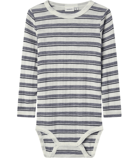 Name It Nmmwang Wool Needle bodySøt body til gutt i myk merinoull. Bodyen har striper over hele.Materiale: 100% Ull (merinoull) ...
