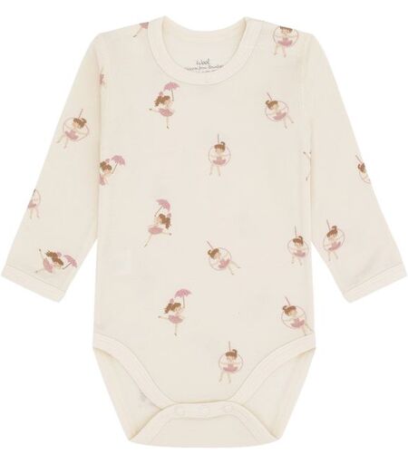 Hust and Claire ullbody til baby og småbarn – med myk bambus mot hudenLangermet body fra Hust and Claire i en myk og elastisk ull- og bambusblanding, perfekt for baby og småbarn. Bodyen har et fint print, og kneppes praktisk på venstre skulder og mellom bena for enkel av- og påkledning.Ullen ligger ...