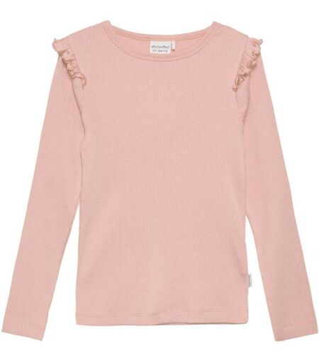 MinyMo ribb genser til barnMyk og behagelig genser i ribbestrikk fra MinyMo. Den har rysjekant på skuldrene som gir genseren et feminint utrykk. Den er laget av en deilig modal/bomull-mix som gjør genseren veldig myk og behagelig å ha på. Materiale: 50% bomull, 46% modal og 4% elastane ...