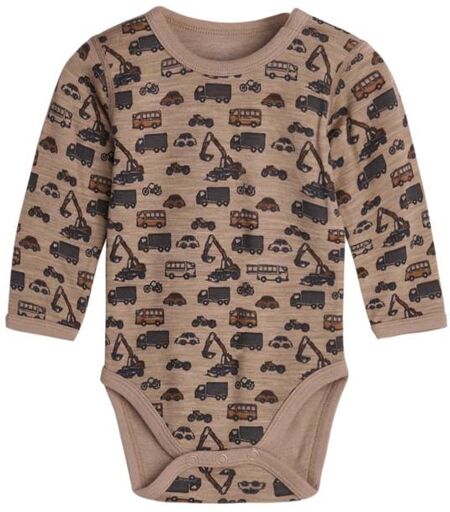 Hust & Claire ullbody til baby og småbarn med bilerLangermet body i behagelig, elastisk ull og viskose av bambus med biltrykk. Kneppes på venstre skulder og mellom bena. Alt stoff som treffer huden er i bambus, slik at plagget også passer til de med sensetiv hud. Dette produktet er Oeko-Tex ...