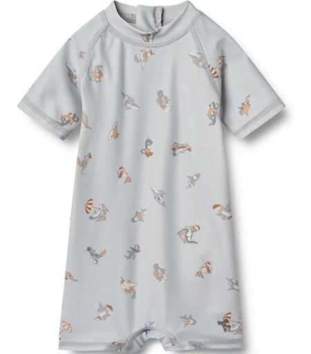 Wheat Cas UV-drakt til babyUV-drakt til baby med korte ermer og ben. UV-drakten har en liten krage for å beskytte nakken og halsen fra solen og glidelås bak.Den har UV 40+/UPF 40+ beskyttelse.Materiale: 83% resirkulert polyester, 17% elastane ...