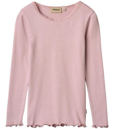 Wheat Reese genser til barnLangermet ribbestrikket T-skjorte i en myk blanding av økologisk bomull og Lenzing modal for barn. De kan enkelt styles med bukser eller skjørt, og fungerer fint som et ekstra lag under kjoler eller selebukser på kaldere dager.Tettsittende og elastiskBlondedetaljer ved ...