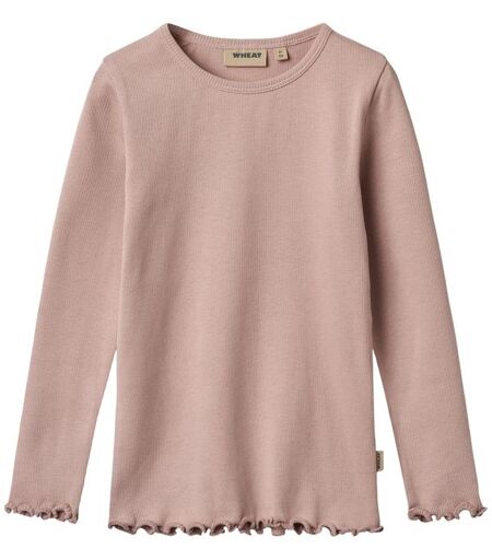 Wheat Ida rib genser til barnSkjønn genser i myk økologisk bomull til barn. Genseren har ribbemønster og med blonder rundt mansjettene og midjen.Materiale: 96% økologisk bomull, 4% elastan ...