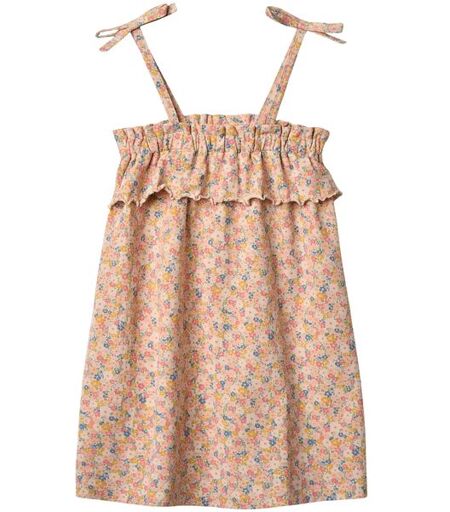 Wheat Anna kjole til barnErmeløs kjole med volanger og print i myk, økologisk bomull for barn. Kjolen har en flatterende skjæring med rynkedetaljer som gir ekstra volum. Knappelukking bak gjør det enkelt for barnet å kle seg selv. Den kan styles med våre sandaler for et søtt sommerantrekk, eller ...