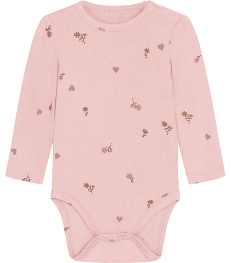 Hust and Claire Buller bodyLangermet body i myk, elastisk bambusviskose med hjerter og blomster. Modellen har et blondemønster og rynker på skuldrene. Bodyen lukkes med trykknapper på venstre skulder og mellom bena. Dette produktet er Oeko-Tex 100®-sertifisert.95% viskose af bambus 5% elasthan ...