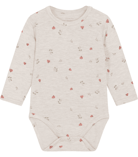 Hust and Claire Buller body i bambusLangermet body i myk, elastisk bambusviskose. Denne bodyen er laget i to forskjellige design: en med bier og blader og en med marihøner og blader. Begge modellene lukkes med trykknapper på venstre skulder og mellom bena.95% viskose af bambus 5% elasthan ...