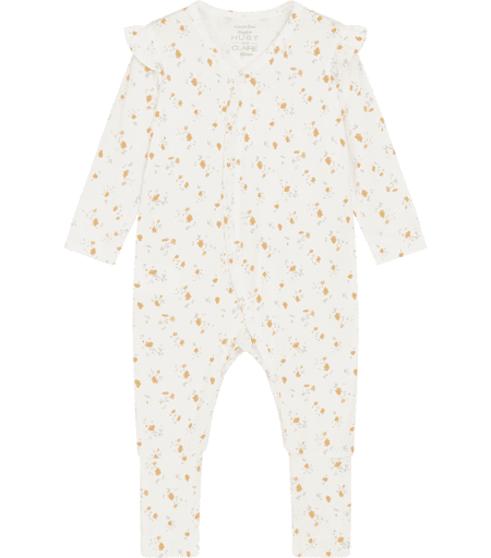 Hust and Claire Mulle heldress i bambusLangermet nattdrakt i myk, elastisk bambusviskose. Modellen har et blomstertrykk og er pyntet med volanger over skuldrene. Dressen kneppes lettere asymmetrisk fra halsen og ned til venstre fot. Ved føttene er det påsatt en foldefot som man kan få foten gjennom, ...
