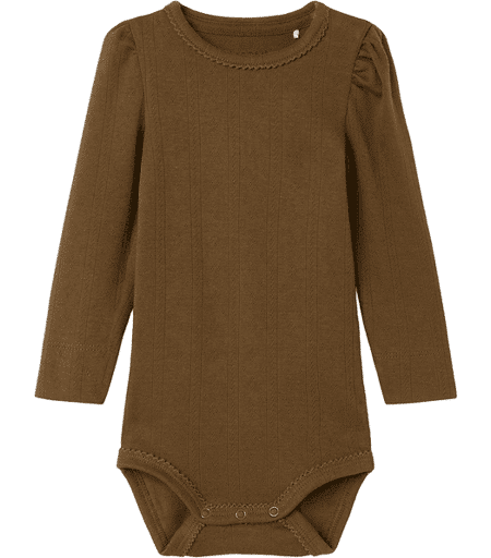 Name It Nbfnigella bodyNydelig body til små jenter i myk økologisk bomull. Bodyen har needle-drop hullmønster og blondedetaljer rundt sømmene. Fine puffermer gjør den ekstra pyntet.Materiale: 95% organic cotton, 5% elastane ...