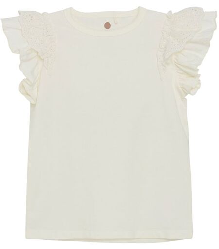En Fant t-skjorte til barnSkjønn t-skjorte med volangdetaljer på ermene og et vakkert hullmønster som gir et feminint preg. Den har en behagelig passform og et elegant uttrykk, perfekt både til hverdagsbruk og festlige anledninger. Laget av et mykt og slitesterkt materiale som sikrer komfort hele ...
