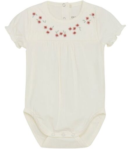 En Fant kortermet body med broderierKortermet body med søte puffermer, laget i myk bomull med elastan for ekstra komfort og bevegelighet. Den kombinerer funksjonalitet med fine detaljer, som vakre broderte blomster og en rynket effekt over brystet, som skaper delikate detaljer nedover fronten. ...