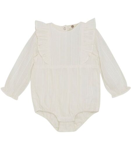En Fant body-bluseSøt langermet body til baby med fine volanger over begge skuldre. Ermeendene har en elastisk kant som skaper en sjarmerende volum-effekt. Praktiske trykknapper nederst gjør den enkel å ta av og på, perfekt for både hverdag og spesielle anledninger.Materiale: 100% bomull ...
