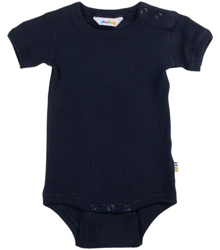 Joha kortermet body, NavyKortermet body med trykknapper på den ene skulderen og mellom bena. Laget av en deilig, myk og elastisk økologisk bomullskvalitet med en vakker struktur som er perfekt som innerplagg. Ensfarget og sertifisert i henhold til Oeko-Tex 100-standarden.Materiale: 100% økologisk ...