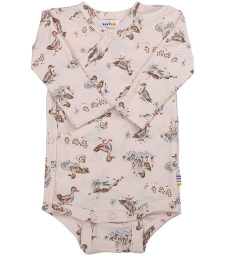 Joha Lake kortermet body i bambusOmslagsbody med trykknapper på den ene skulderen og mellom bena for enkel påkledning. Laget av en utrolig myk kvalitet basert på 100 % økologisk bambus, som er svært behagelig å ha på. Dekorert med et søtt print. Sertifisert i henhold til Oeko-Tex ...