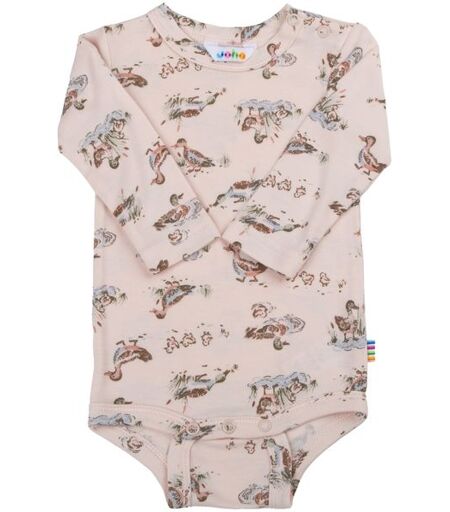 Joha Lake kortermet body i bambusSøt body med trykknapper på den ene skulderen og mellom bena for enkel påkledning. Laget av en utrolig myk kvalitet basert på 100 % økologisk bambus, som er svært behagelig å ha på. Dekorert med et søtt print. Sertifisert i henhold til Oeko-Tex ...