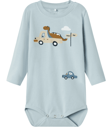 Name It Nbmdylon bodySkjønn body til små karer laget i mykt jersey-materiale. Bodyen har print av dinosaurer i biler foran.Materiale: 95% økologisk bomull, 5% elastan ...