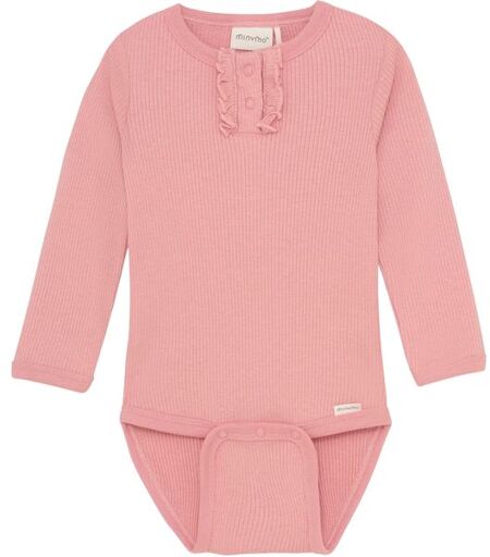Minymo rib bodyTidløs body til de aller minste i en myk modal og bomulls-mix. Bodyen har ribbemønster og knapper på brystet med volanger.Materiale: 50% modal, 46% bomull, 4% elastan ...
