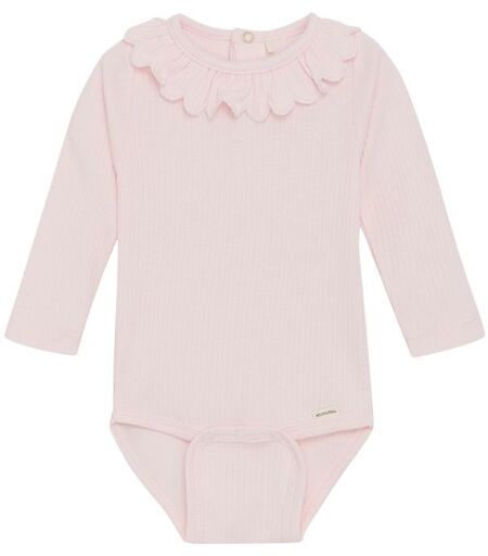 Minymo Rib bodyElegant, ensfarget langermet body fra Minymo. Bodyen er laget av 100 % kjemmet bomull, som er ekstra myk og føles behagelig mot huden. Den har en delikat, detaljert krage som gir et søtt utseende. Praktisk lukkes den med trykknapper både mellom bena og bakpå.Materiale: 100% bomull ...