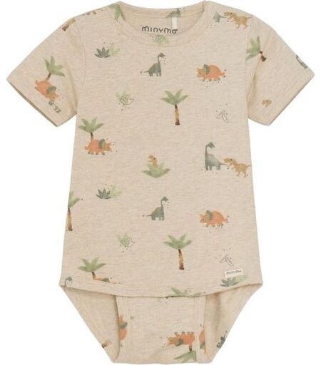 Minymo kortermet body m/printFlott kortermet body med print fra Minymo. Bodyen er laget av en behagelig bomullsblanding og har et fint dinosaurprint over hele. Den lukkes med skjulte trykknapper på skulderen og trykknapper mellom bena for enkel av- og påkledning.Materiale: 90% bomull, 5% polyester, ...