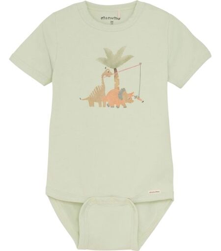 Minymo kortermet bodySkjønn kortermet body med print fra Minymo. Bodyen er laget av en behagelig bomullsblanding og har et fint dinosaurprint på forsiden. Den lukkes med skjulte trykknapper på skulderen og trykknapper mellom bena for enkel av- og påkledning.Materiale: 95% bomull, 5% elastan ...