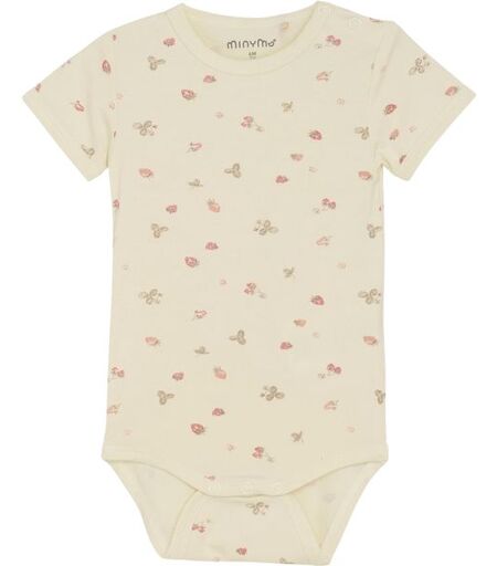 Minymo kortermet body i bambusUtrolig myk kortemet body i luftig viskose. Den har søtt print over hele. Bodyen er utstyrt med praktiske trykknapper på venstre skulder og mellom bena. Den er laget av bambusviskose, et supermykt materiale som føles behagelig mot huden og gir optimal komfort takket ...