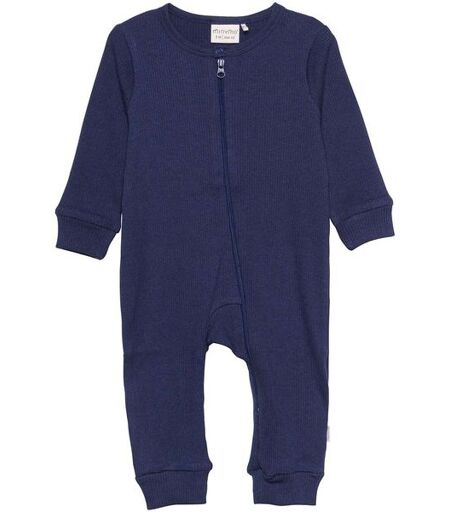 Minymo Rib heldressHeldress/pyjamas i ensfarget bomullsrib med modal og mye stretch. Dressen er behagelig med ribbekant ved ankler og håndledd. Den lukkes med glidelås foran. Fibrene er sertifisert med TENCEL™, produsert av LENZING™.Materiale: 50% modal, 46% bomull, 4% elastan ...