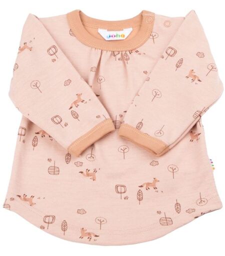 Joha genser til barn i ull/bomullDeilig ullgenser til barn i mykt og behagelig materiale. Genseren har bomull på innsiden og ull på utsiden: perfekt for barn med sensitiv hud.Genseren har A-form med lange ermer og rynkeeffekt ved ermene og rundt halsen som en søt detalje.Genseren har god stretch og ...