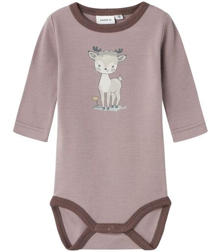 Name It Nbfwillit body i ullNydelig body i myk merinoull. Bodyen har print av rådyr og har kontrastfarge i sømmene.Materiale: 100% merinoull ...