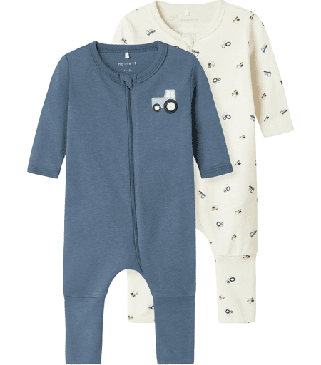Name It Nbmnightsuit 2-pack pyjamas/heldress2-pack med søte pyjamas/heldress til de aller minste. Den ene har traktorprint på brystet og den andre har traktorprint over hele. Praktisk glidelåslukking.Materiale: 51% økologisk bomull, 49% bomull ...