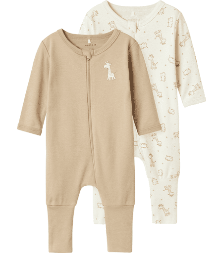 Name It Nbnnightsuit 2-pack pyjamas/heldress2-pack med søte pyjamas/heldress til de minste. Den ene har print av en sjiraff på brystet mens den andre har print over hele. Praktisk glidelåslukking.Materiale: 51% økologisk bomull, 49% bomull ...