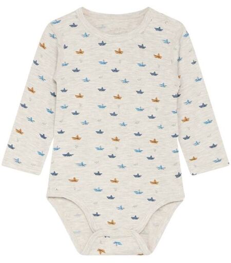 Hust & Claire Buller body m/papirbåterBody i behagelig, elastisk bambusviskose med trykk av papirbåter. Modellen kneppes på venstre skulder og mellom bena. Dette produktet er Oeko-Tex 100®-sertifisert.Materiale: 95% bambusviskose, 5% elastan ...