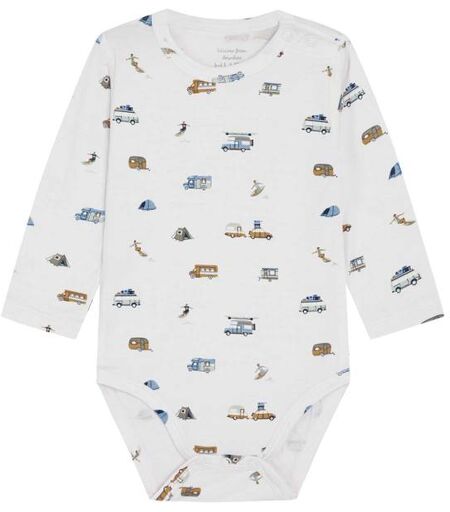 Hust & Claire Buller body m/campingBody i behagelig, elastisk bambusviskose med trykk av camping livet. Modellen kneppes på venstre skulder og mellom bena. Dette produktet er Oeko-Tex 100®-sertifisert.Materiale: 95% bambusviskose, 5% elastan ...