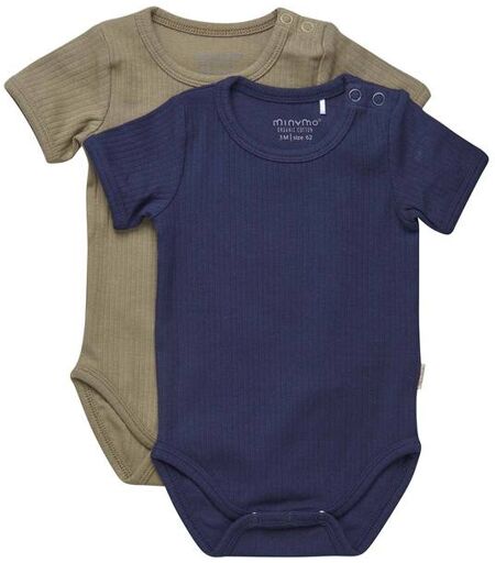 MinyMo 2-pack kortermet body2-pakning med kortermet bodyer. Pakken inneholder 1 body med striper og 1 ensfarget body. Praktisk trykknapp-lukking mellom bena og på venstre skulder. God plass for bevegelse.Materiale: 95% bomull, 5% elastan ...