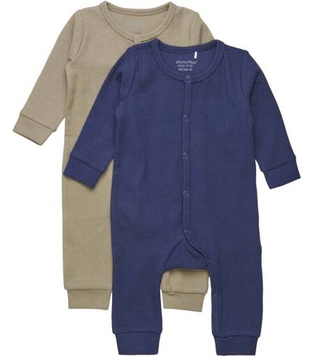 MinyMo 2-pack heldress til baby2-pakning med heldresser/pyjamas i god bomullskvalitet som beholder formen etter mange vask. Pakken inneholder 2 heldresser: en med striper og en ensfarget. Begge lukkes med praktiske trykknapper fra halsen ned til venstre ankel. Myke kanter ved halsutskjæring, ermer ...
