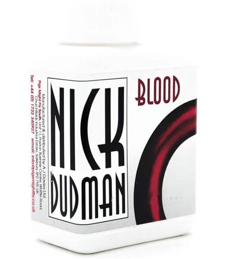 Nick Dudman Blod er blod av beste kvalitet og er brukt i storfilmer som Harry Potter. Dette er blod som jevlig blir brukt til og på scenestyling, spesialeffekter, rekvisitter, parykker og garderobeavdelinger og makeup-effekter. Blodet har en lett konsistens, er trygt og kan raskt fjernes. Blodet er bygget opp av sirup. Kan blandes ut for å få en tjukkere konsistens med melis eller mer tynnflytende konsistens med vann hvis ønskelig. Det er enkelt å vaske av fra alle overflater. ...