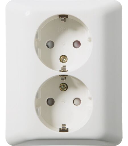 En hvit stikkontakt fra Elko som er dobbelt jordet og innfelt med hurtigklemmer. Den leveres med hel dekkplate og barnevern. Målene er 84 x 104 x 49 mm. Vi er etter Forskrift om elektrisk utstyr § 21 pliktig til å informere våre forbrukere at installasjonsmateriell ment for å kunne inngå i et fast elektrisk anlegg kan kun installeres av en registrert installasjonsvirksomhet. Unntatt er elektrisk materiell som utelukkende er ment for bruk i faste teleinstallasjoner, og elektrisk materiell som forbruker selv lovlig kan installere. ...
